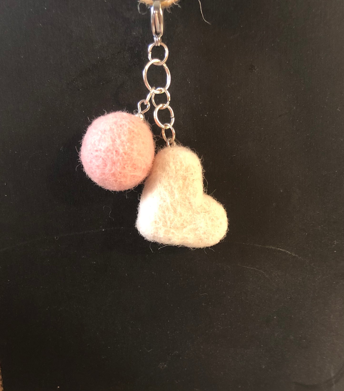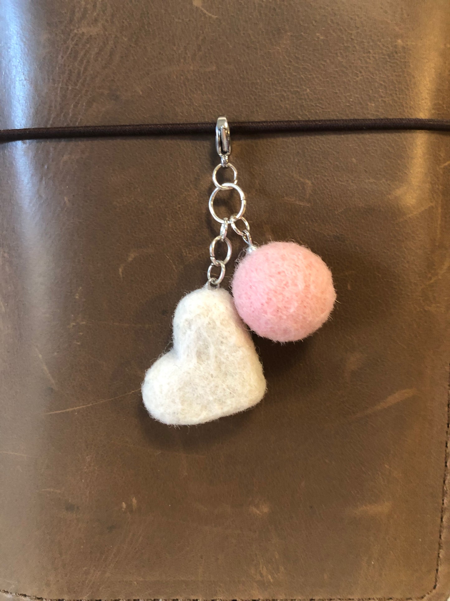 Wool Pom & Heart Charm